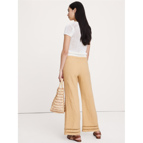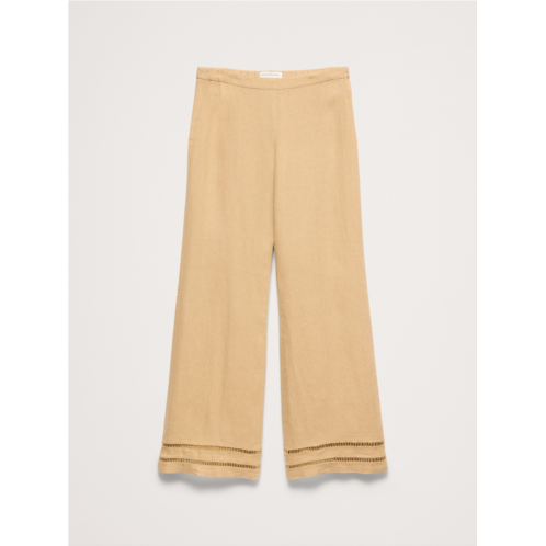 - Things we love about these linen pants: the kick-flare silhouette, the premium 100% linen fabric, the lace trim at the cuff, and the hidden elastic at the back waist for a custom fit. Make it a set and wear with the matching linen vest.