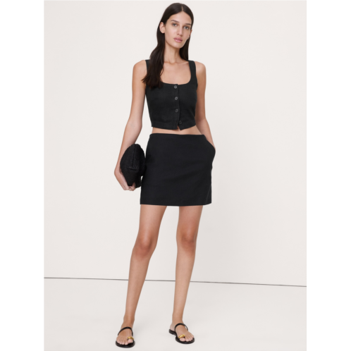 - This mini skirt is designed to look (and feel) great on, thanks to a hidden pair of shorts underneath. Another thing we love? The linen-viscose fabric is soft and ideal for warm weather.