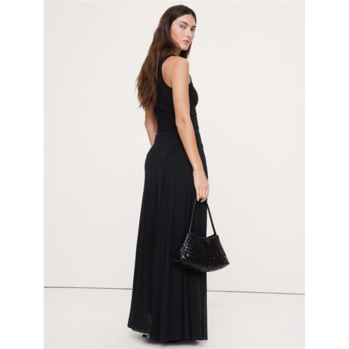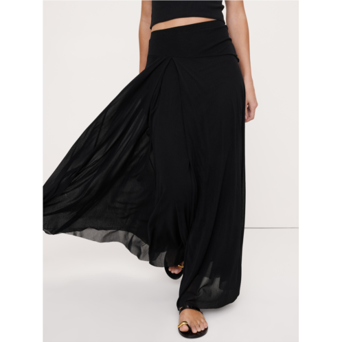 - Things we love about this maxi skirt: the semi-sheer mesh, the asymmetrical front, and the box pleat details at the hip. Plus, it's super stretchy and t-shirt soft.