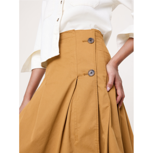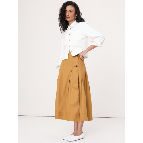 - We started with a classic A-line silhouette and added asymmetrical pleats to wrap around the waist of this skirt. Then, we finished it with rows of trapunto stitching and an extra-wide hem as a nod to our heritage of utilitarian design. Crafted in our rugged-yet-soft cotton twill that has been specially washed for lived-in softness and color.