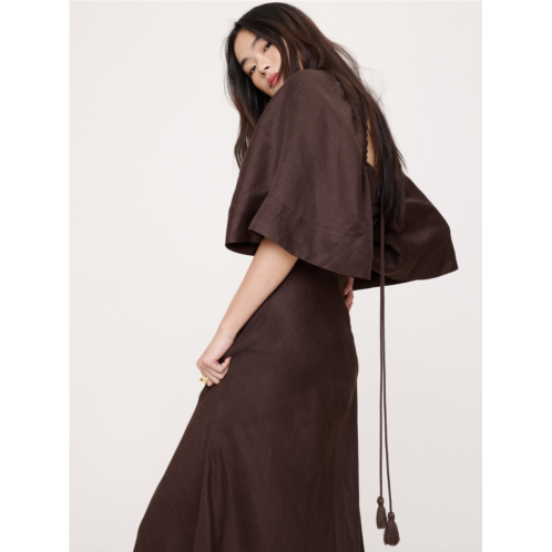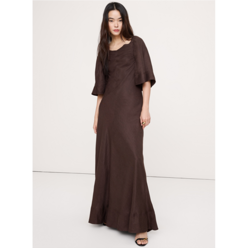 [US] Bananarepublic Viscose-Linen Flutter-Sleeve Maxi Dress