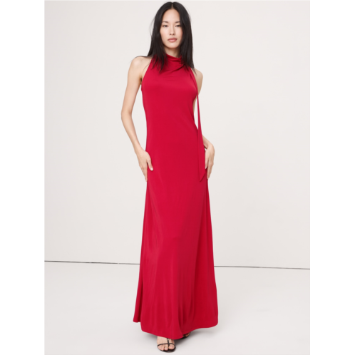 - Cut from a stretchy matte jersey, this maxi dress feels as effortless as a T-shirt but looks more dressed-up thanks to a cowl neck with draping scarf tie detail.