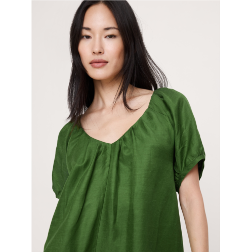 [US] Bananarepublic Viscose-Linen Puff-Sleeve Mini Dress
