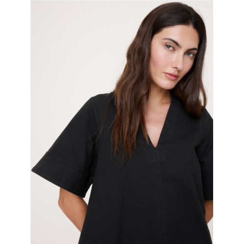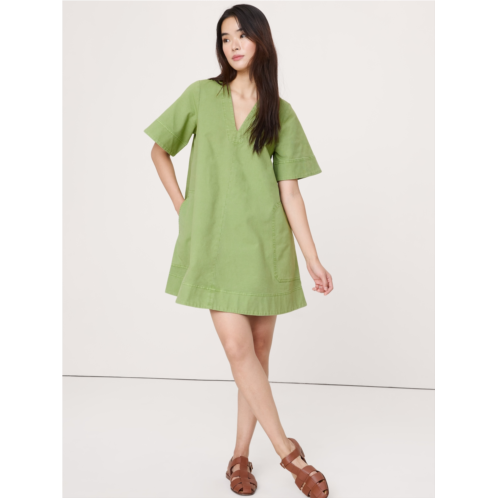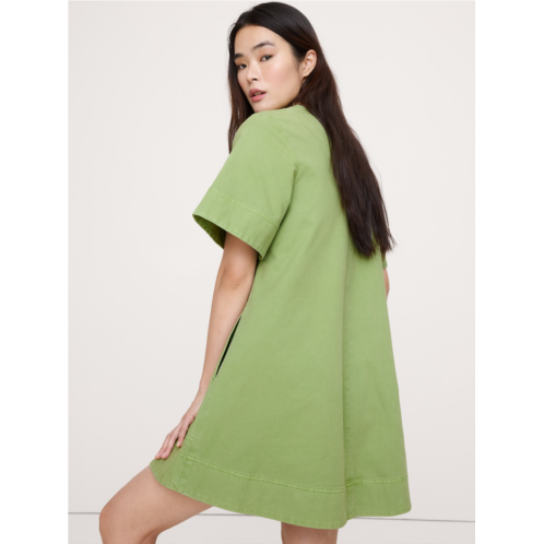 - Your new partner in crime, this cotton mini dress is cut in a swing silhouette from a denim-like cotton twill finished with a garment wash for already-loved softness and lived-in color.