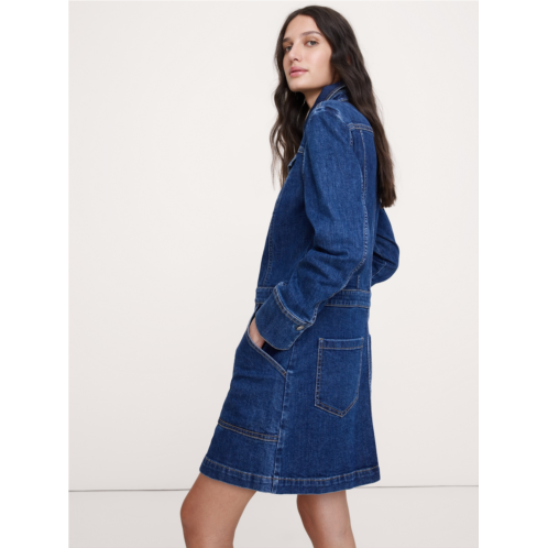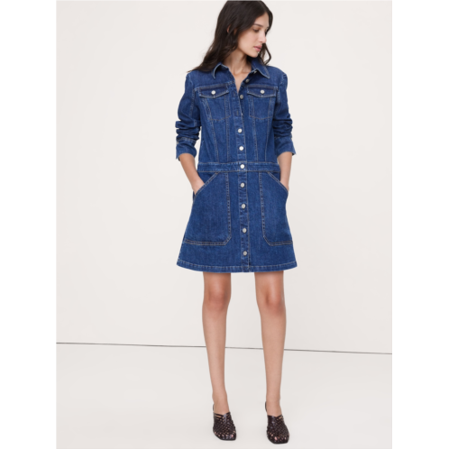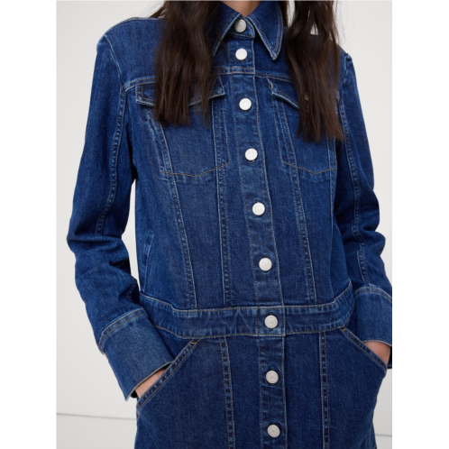 - We borrowed all the design details we love from the classic trucker jean jacket and reimagined them as a dressthe shank buttons, chest pockets, paneled construction, and topstitching are all here. Cut from rugged, yet soft stretch-cotton denim.