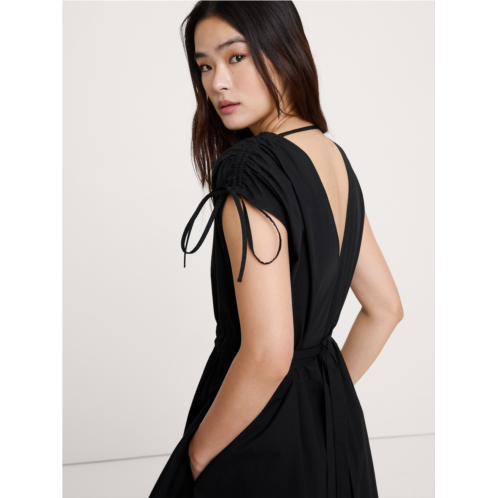 [US] Bananarepublic Poplin Ruched-Shoulder Maxi Dress