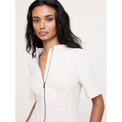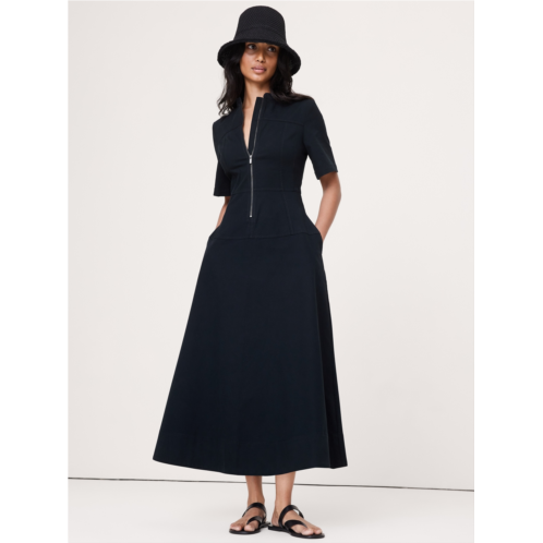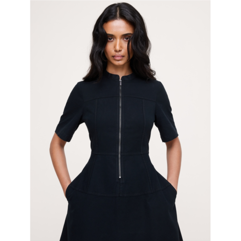 - Cut from rugged, yet soft stretch-cotton canvas, we added a zip front detail and paneled construction to this fit-and-flare dress as a nod to our heritage of utilitarian design.