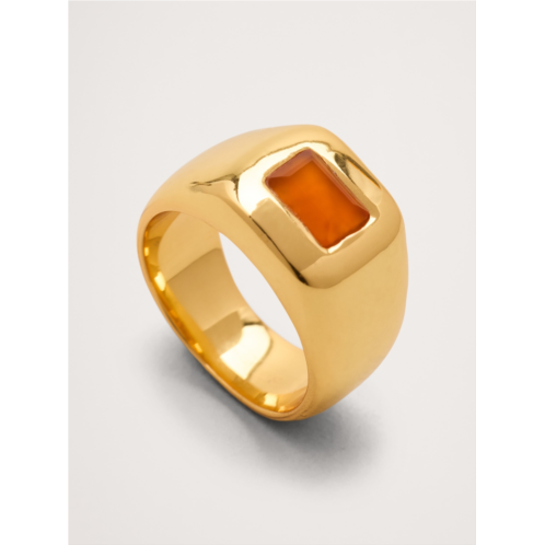 - A sleek and sculptural signet ring with a rich, orange gemstone, in your choice of 14k-gold or 999-silver plated brass.