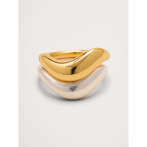- A sparkling set of sculptural ringsin 14k-gold and 999-silver plated brass.