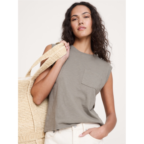 - Exceptionally soft, this lightly textured slub cotton jersey is a fave for its everyday appeal. Here, we cut this one in a muscle tank silhouette with a pocket at the chest.