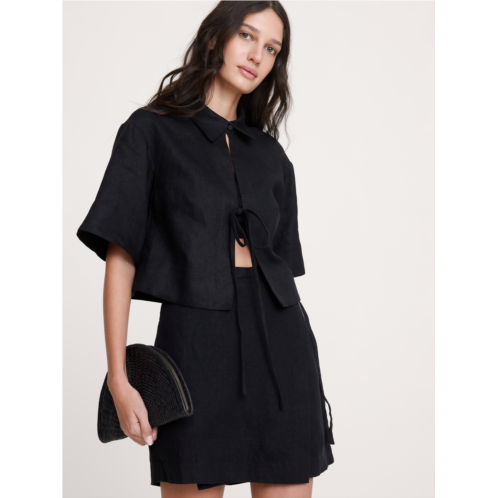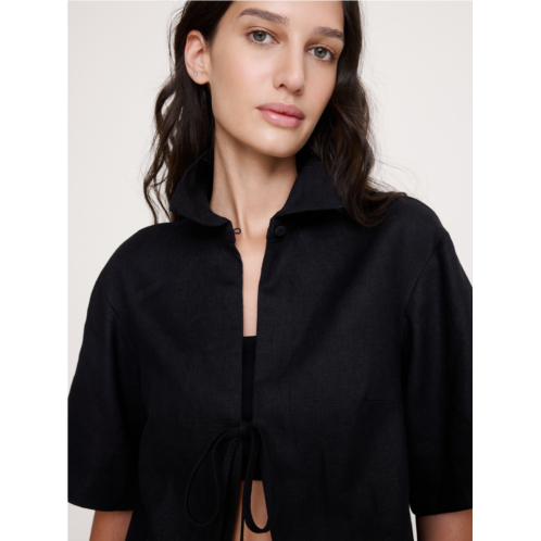 - Pairs well with warm weather. This easy tie-front top is cut from our favorite 100% certified-European flax linen.