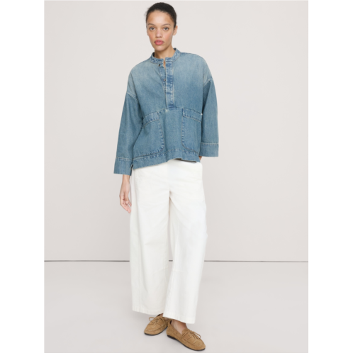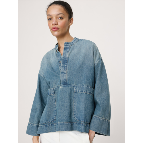 - An invitation to play with oversized proportions, this popover top is crafted from a soft 100% cotton denim.