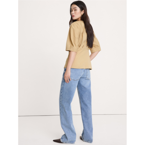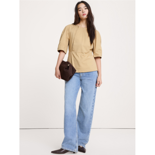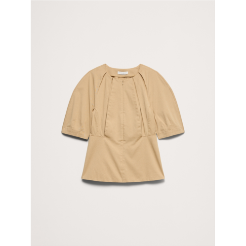- Softly structured, we added a pleated detail to created an almost puffed shape to the sleeves of this topcrafted in a soft, stretch-cotton with a brushed finish.