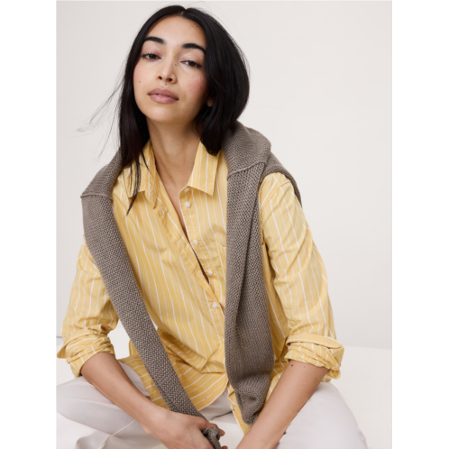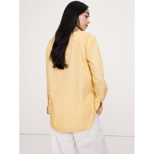 - Back and better than ever. We updated the fit on our best-selling Oversized Shirt by taking it in slightly at the shoulders, waist and sleeves to create the ideal, effortless button-down top in premium 100% cotton poplin.