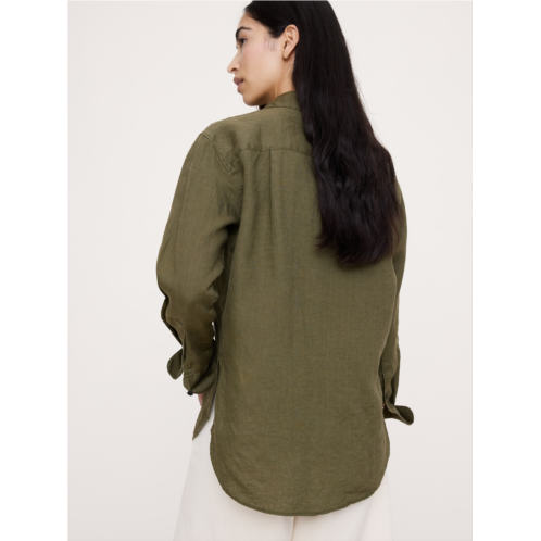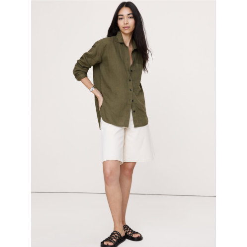 - Back and better than ever. We updated the fit on our best-selling Oversized Shirt by taking it in slightly to create the ideal button-down top in100% certified-European linen.