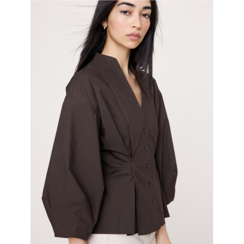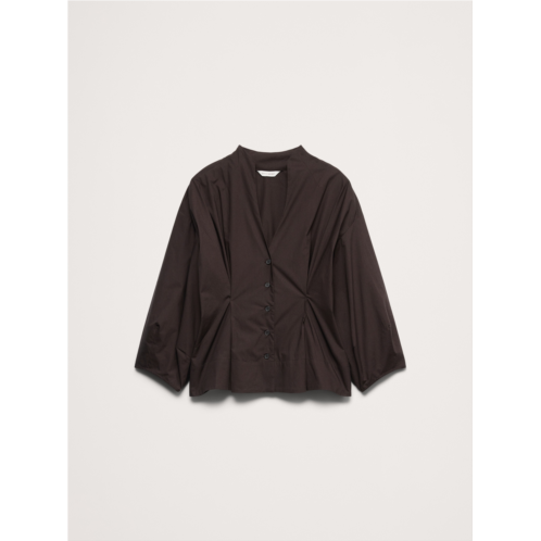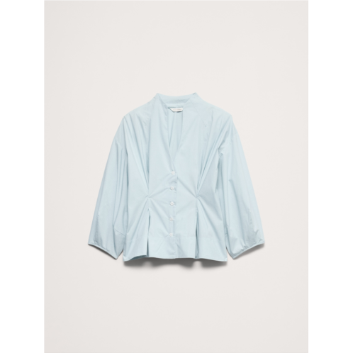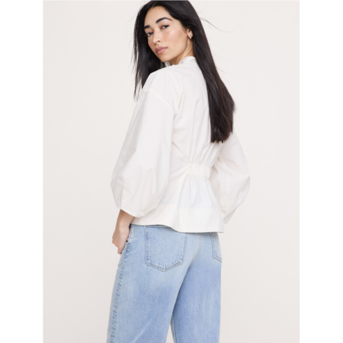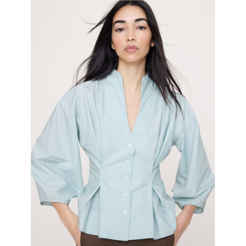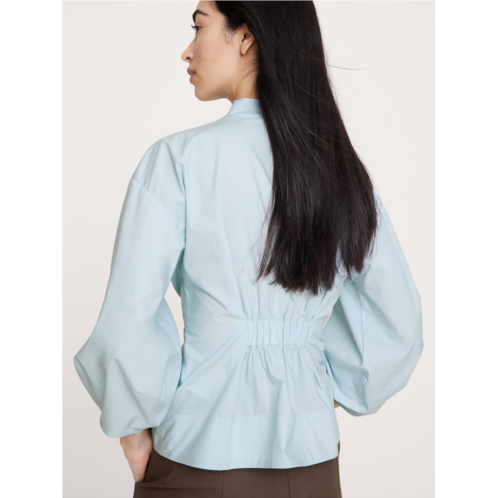 - A fun and flirty take on the classic poplin shirt, this one has blouson sleeves here, as well as pleats at the waist and a cinched detail at back.