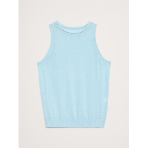 - A very cool sweater tank. This elevated sweater tank is knitted from our ultra-fine, 100% cotton yarn so it's light enough to layer or delightfullysheerworn on its own.