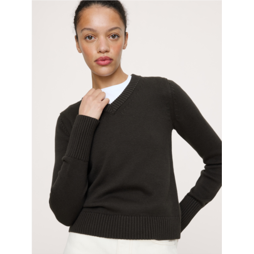 - Meet the sweater we can’t stop wearing. This classic V-neck sweater has a not-too-tight fit and is cut from our softest blend of cotton and silk.