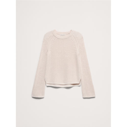 - We opted for flared sleeves for this classic crew-neck sweater. Crafted in our soft, 100% cotton yarn.