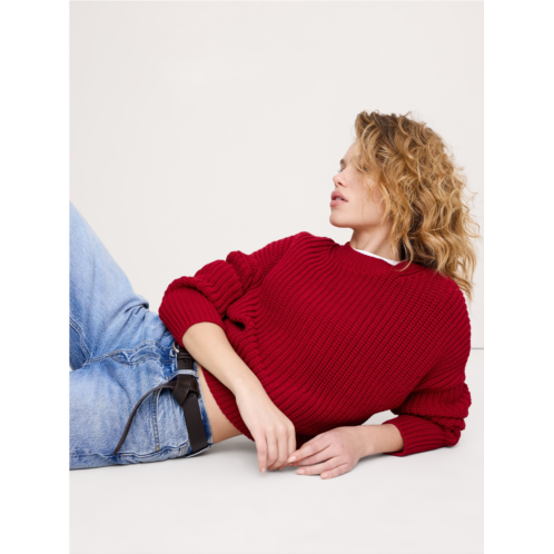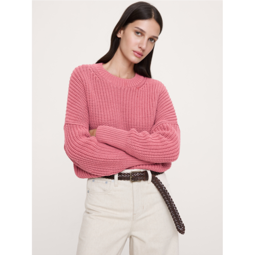 - We wanted to make the classic cotton crew-neck feel fresh, so we updated the fit to a slouchy, dolman-sleeved silhouette and reached for a chunky cotton yarn we love because it's warm enough for winter, but light enough for spring and summer.