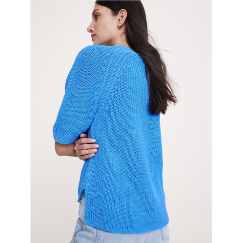 - There's so much to love about this sweater: the streamlined silhouette, the puff sleeves, and the high-low hem. Plus, we crafted it in a 100% cotton yarn we love for its softness and dressed-up look.