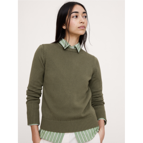 - Meet the sweater we can’t stop wearing. This classic crew-neck sweater has a not-too-tight fit and is cut from our softest blend of cotton and silk.