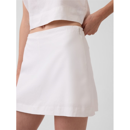 - Soft, heavyweight linen-blend mini skort. In an ultra mini length.