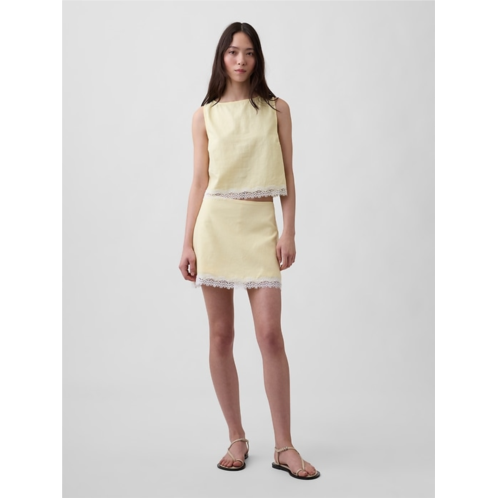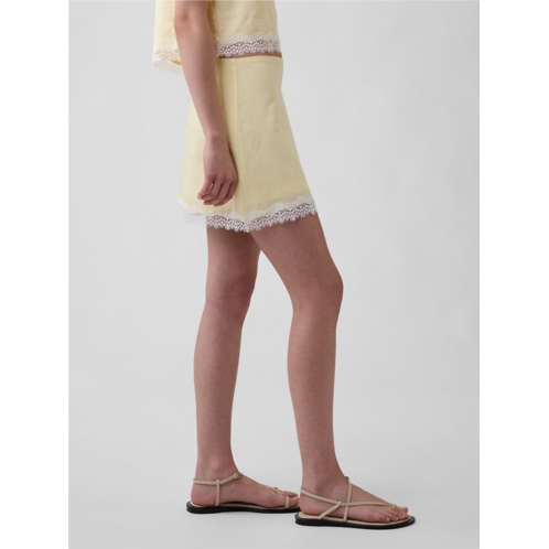 [US] Gap Linen-Blend Lace-Trim Mini Skort