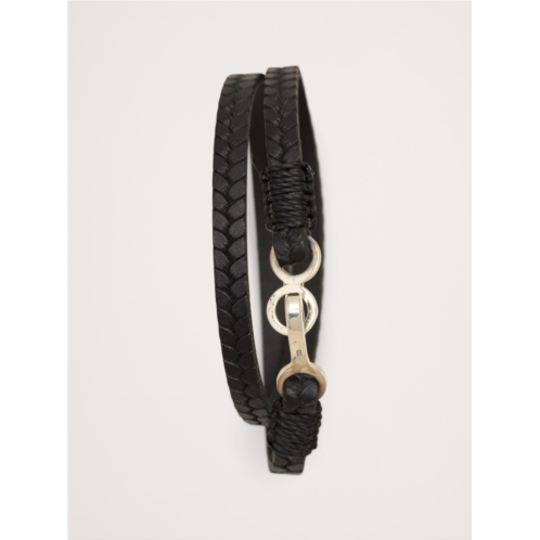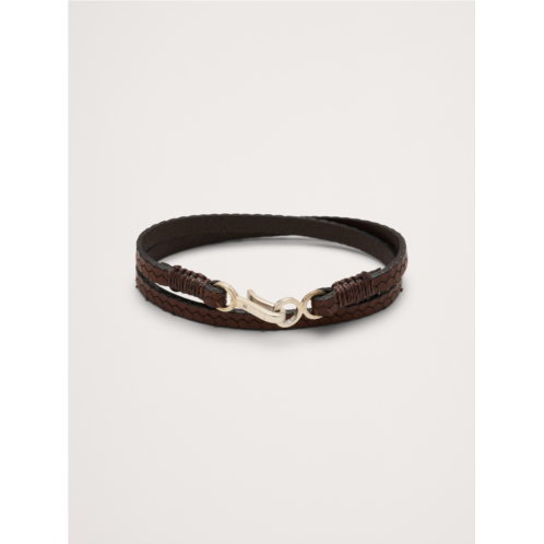 - Embossed vegetable-dyed European leather wraps twice around the wrist, finished with a sterling silver hook-and-eye closure