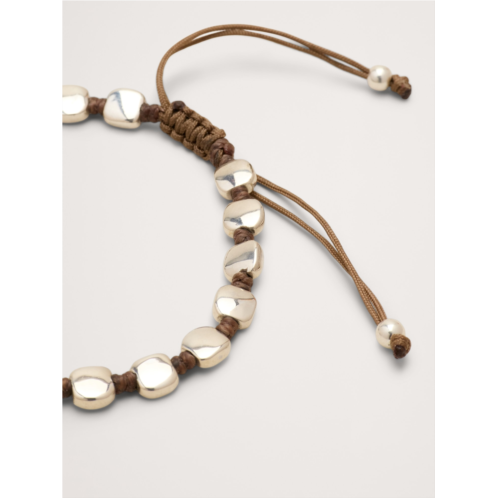 - Sterling silver beads and nylon cord.