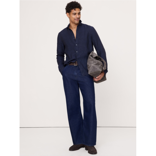 - Things we love about this 100% linen: the rich color, the already-loved softness and how it stays breathable even in heat and humidity. Here, we kept the fit easy and opted for a classic point collar.