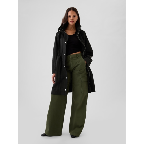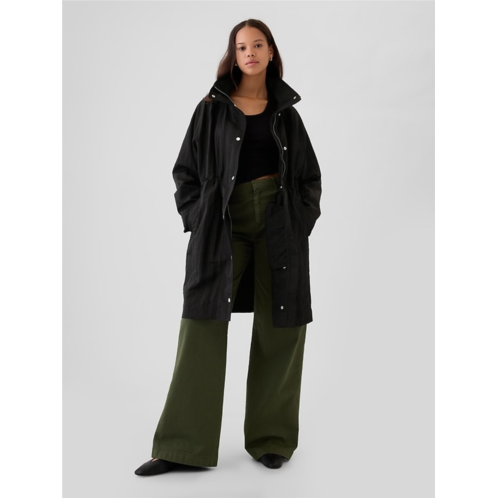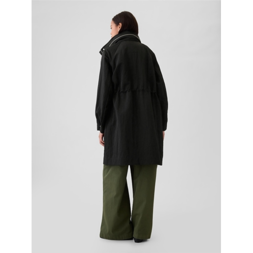 - Mockneck or hooded. Hood rolls into zipper at neck.