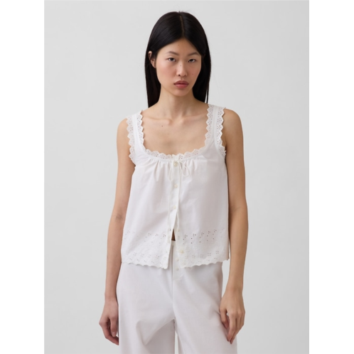 - Soft poplin cotton pajama tank. In a slightly cropped length.