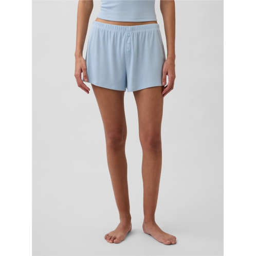 - Supersoft, finely ribbed modal-blend pajama shorts.