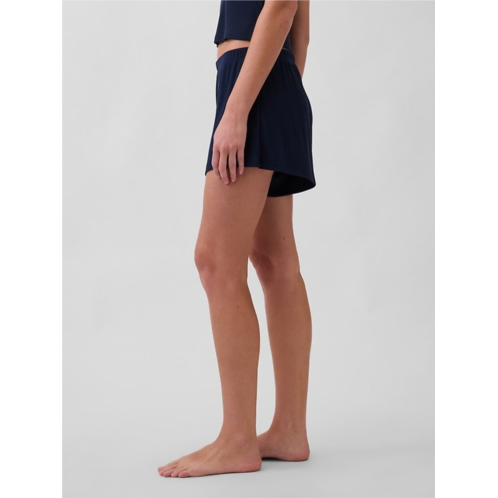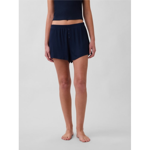 - Supersoft, finely ribbed modal-blend pajama shorts.