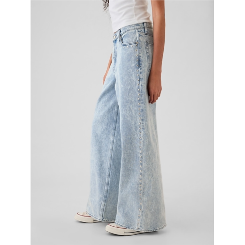 -Details:Silver studs at seams, zip fly & five-pocket styling.