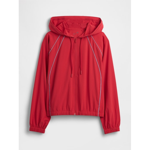 - Breathable, quick-dry, moisture-wicking stretch woven active full-zip hooded jacket. In an oversized fit and slightly cropped length.