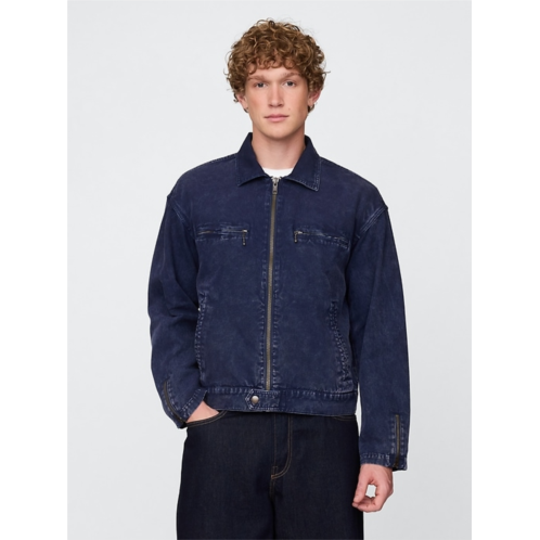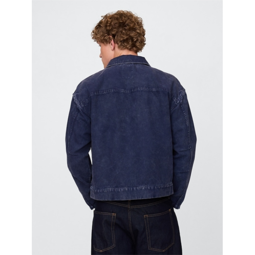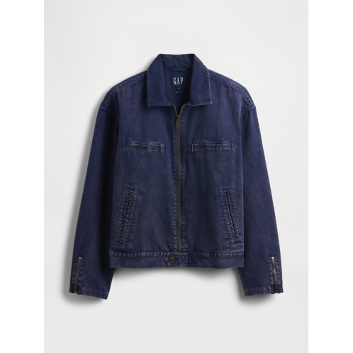 - Smooth canvas moto jacket with double-layer yoke and soft cotton lining.