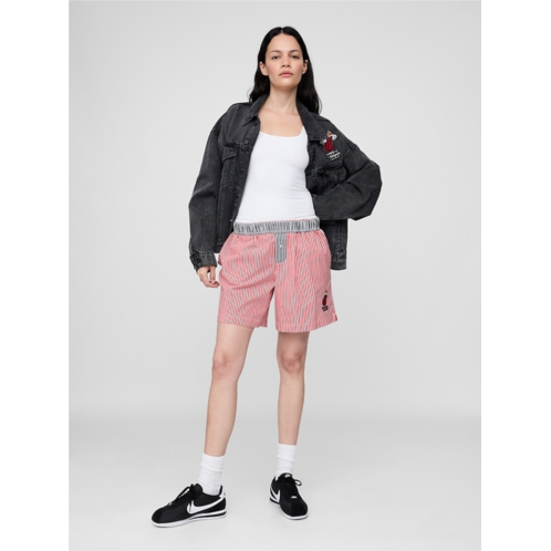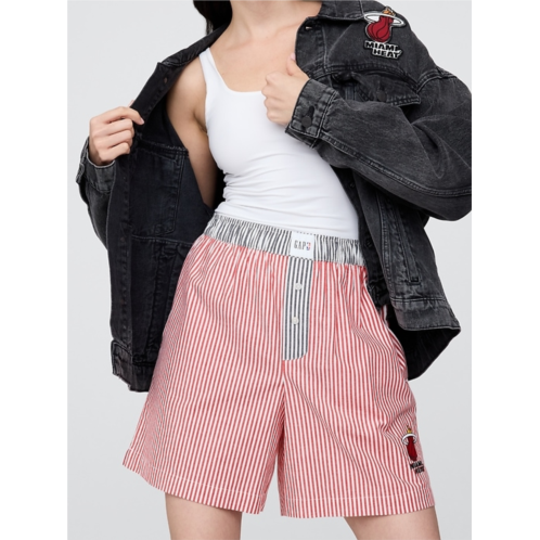- Elasticized waist with faux fly, GAP NBA label at front.