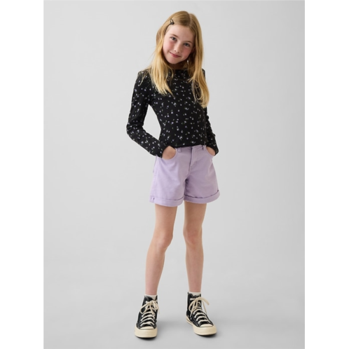 - Button at center front (sizes 4-8 have a hook & bar closure beneath faux snap for easy on and off), zip fly.