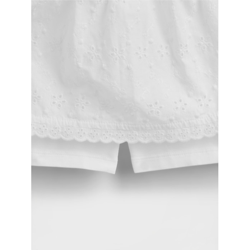 - Allover embroidered eyelet design at skirt.