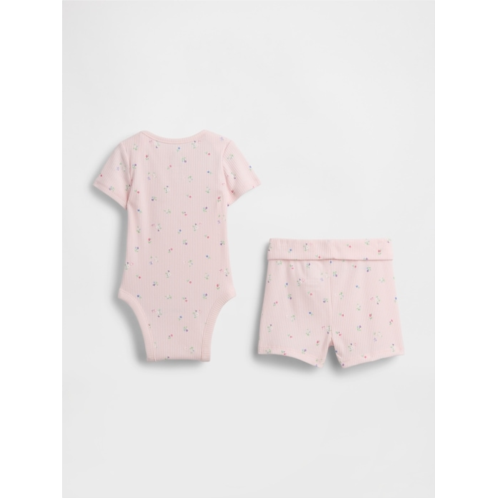 - Supersoft tiny ribbed knit bodysuit and pull-on shorts outfit set.