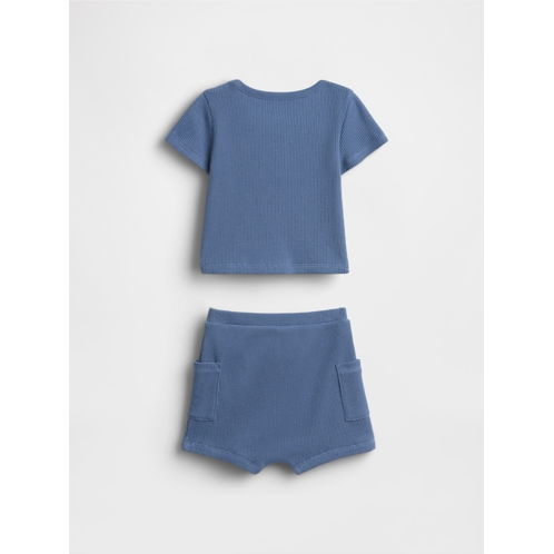- Soft waffle knit cotton Henley T-shirt and pull-on pocket shorts outfit set.