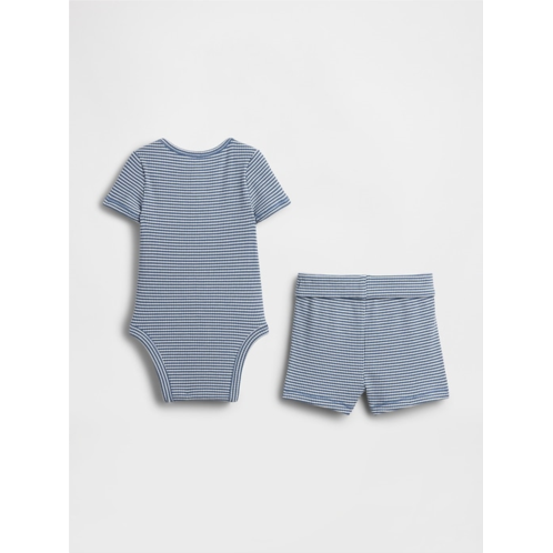- Supersoft tiny ribbed knit bodysuit and pull-on shorts outfit set.
