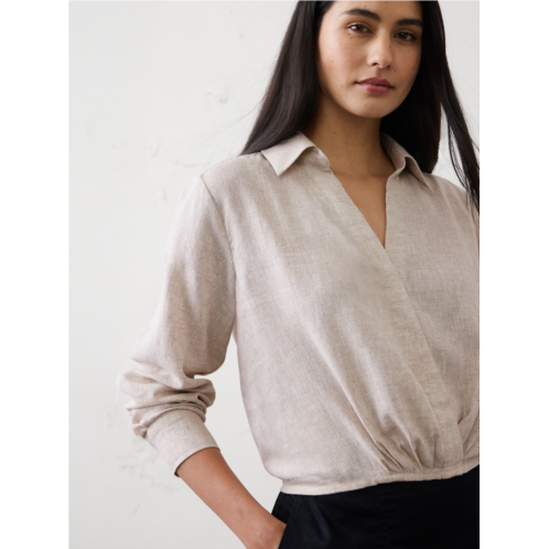 Linen-Blend Surplice Short Top