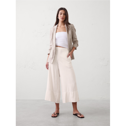 [US] bananarepublic Wide-Leg High-Rise Linen-Blend Cropped Pull-On Pant