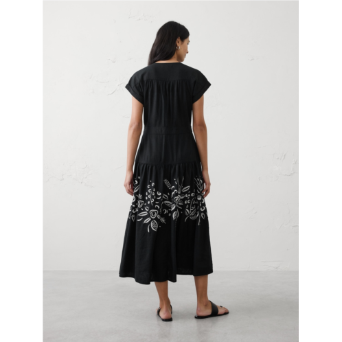 Embroidered Tiered Midi Dress