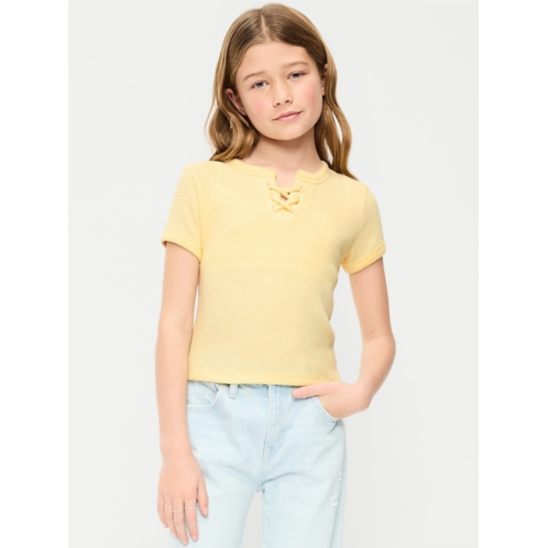 [US] OldNavy Fitted Short-Sleeve Lace-Up Waffle-Knit Top for Girls
