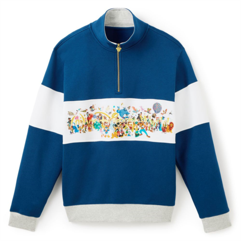 You'll have fun trying to name all your favorite characters featured on this pullover sweatshirt from The Most Magical Place on Earth. Mickey, Minnie, Cinderella, Dumbo, Stitch and Genie are among the colorful cast pictured in and around the Walt Disney World logo on the front of this star studded 1/4 zip top.