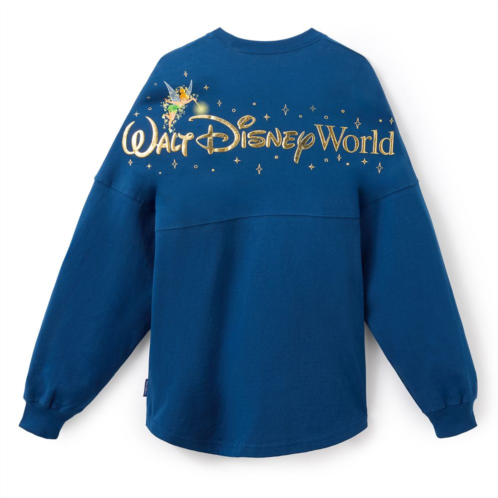 Enjoy a piece of the magic whenever you wear this pullover Spirit Jersey. 'Walt Disney World' is spelled out in metallic golden puffy ink letters across the back shoulders, while Disney's signature 'D' adorns the front chest, all in the retro Disney signature font. Plus, Tinker Bell makes an appearance to sprinkle a little fairy dust of comfort into the design. It's the perfect souvenir.